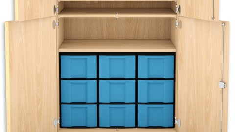 Extra stabile Scharniere rechnen sich im Büro immer. Sie bewähren sich nicht nur bei häufig genutzten Aufbewahrungsmöbeln. Bei großen Türmaßen reichen oft drei statt vier bis fünf Scharniere – eine deutliche Kostenersparnis.